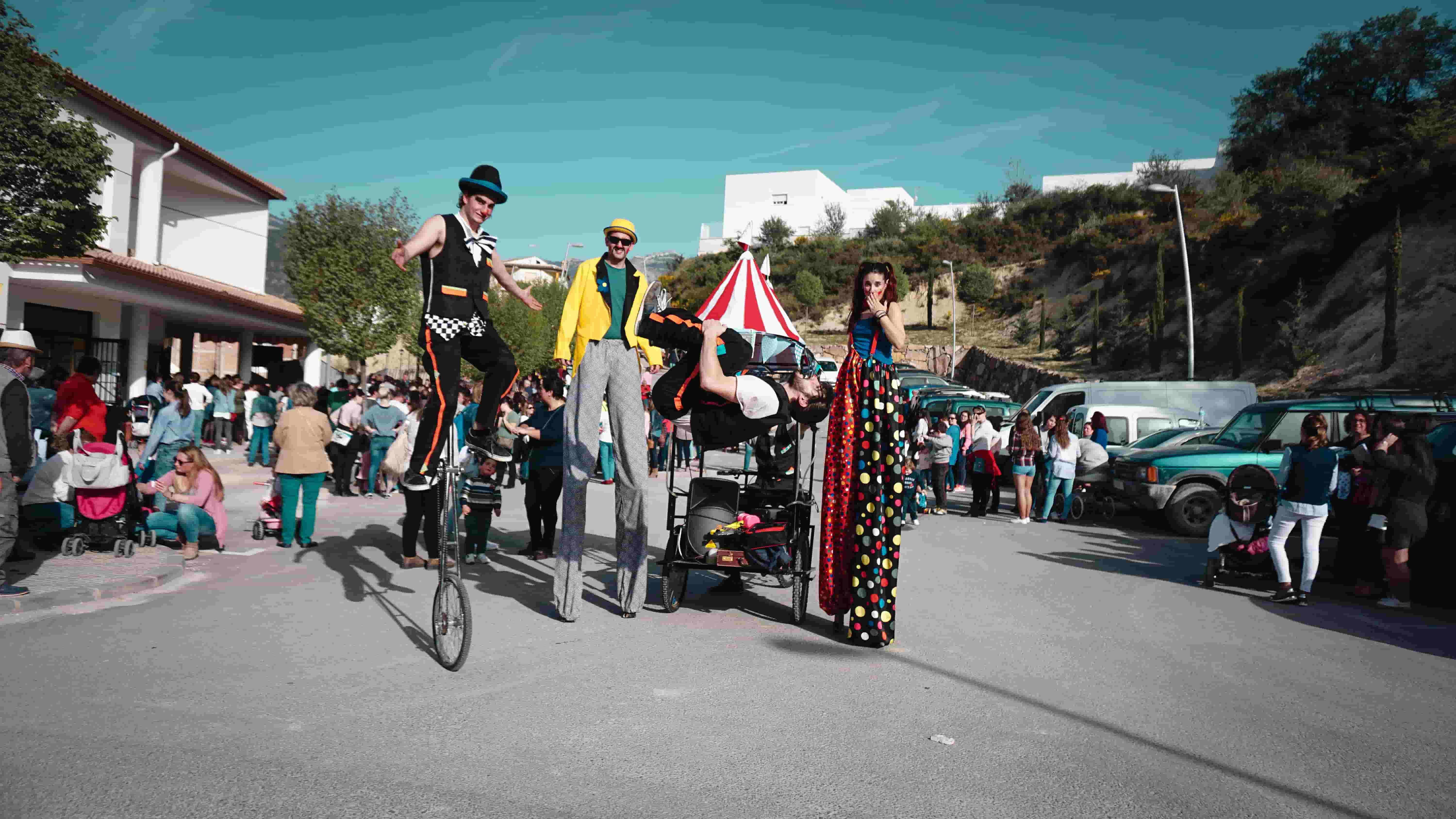 Nuestros espectáculos itinerantes nos permiten jugar con la gente y el espacio dando lugar a la improvisación y el humor. Son una agradable experiencia para la población local, ya que vecinos y familiares comparten risas y hazañas mientras se divierten con las destrezas y las bromas de los artistas, que al ritmo de la música animan a la participación y al disfrute. Además, haciendo uso del espacio público los pasacalles nos permiten realizar una promoción cultural y social del municipio y fomentar otras posibilidades de disfrutar de los bienes culturales promoviendo la participación social, la oferta de ocio y las perspectivas educativas.